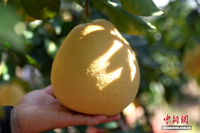 11月19日,江西上饶,重甸甸的文旦挂谦枝端。中新社记者 刘占昆 摄