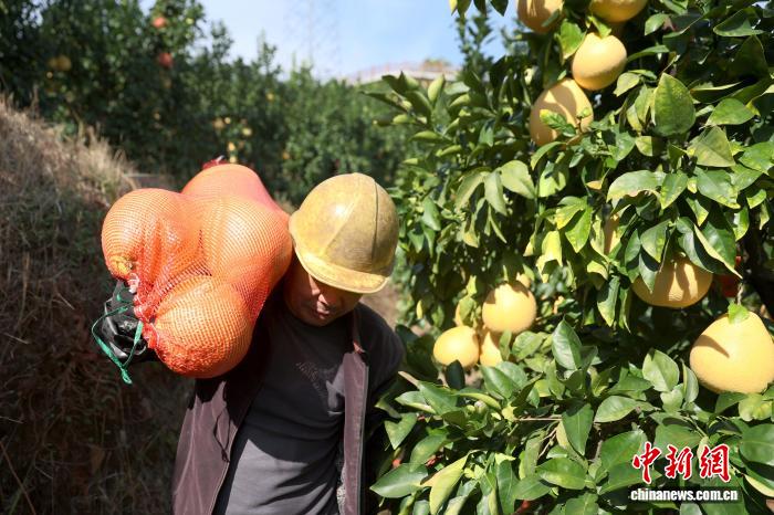 11月19日,江西上饶,果农正正在采戴老练的马家柚。中新社记者 刘占昆 摄